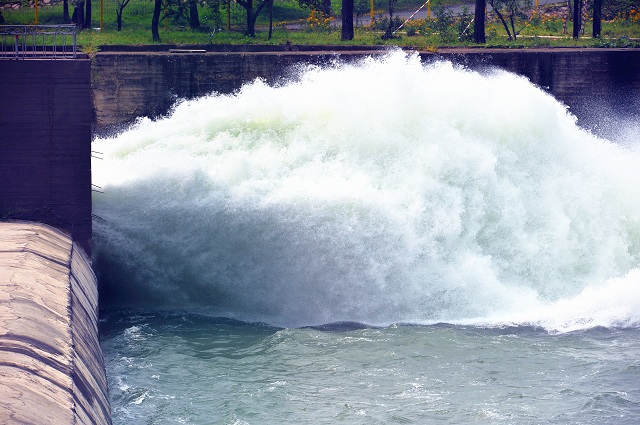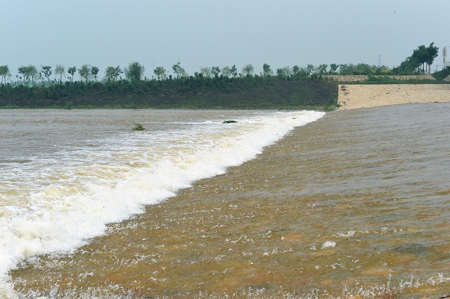 2018年汛期以来,海子水库(金海湖)第二次防汛弃水作业,请广大市民和游客注意安全,不要进入泄洪河道。